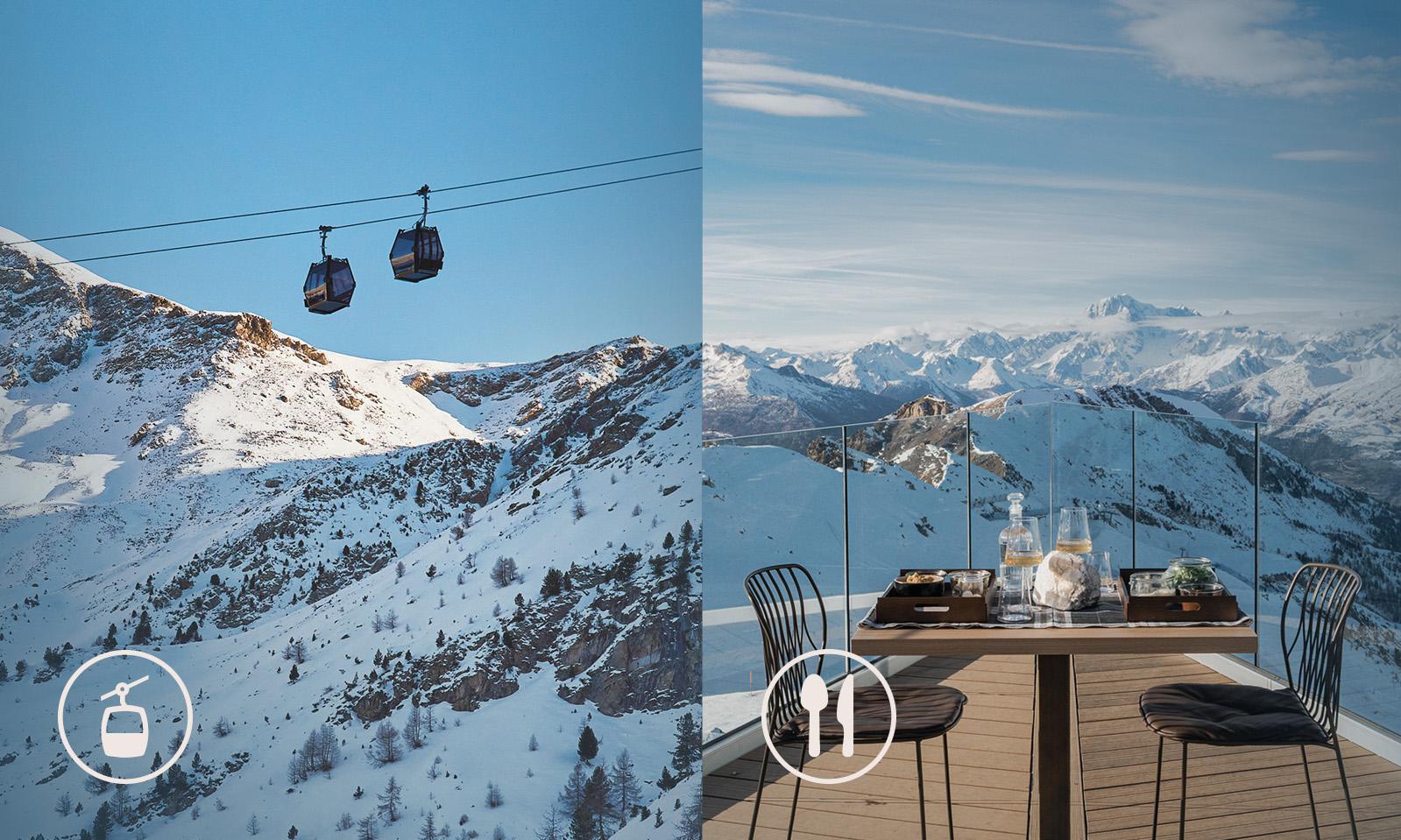 L'emozione che combina la salita panoramica in telecabina al gusto delle Alpi del Panoramic Bistrot.